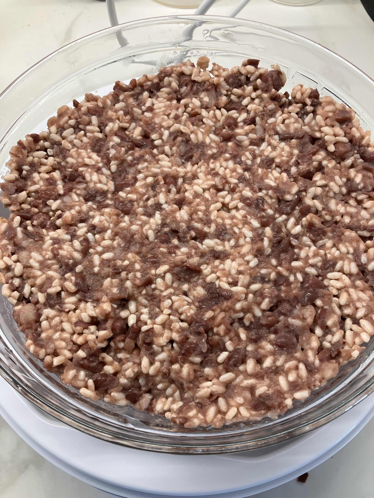 小豆200gを煮て、乾燥麹200gを混ぜて、この状態でヨーグルトメーカーにセットして、布巾をかけて時々かき混ぜて寝かしました。